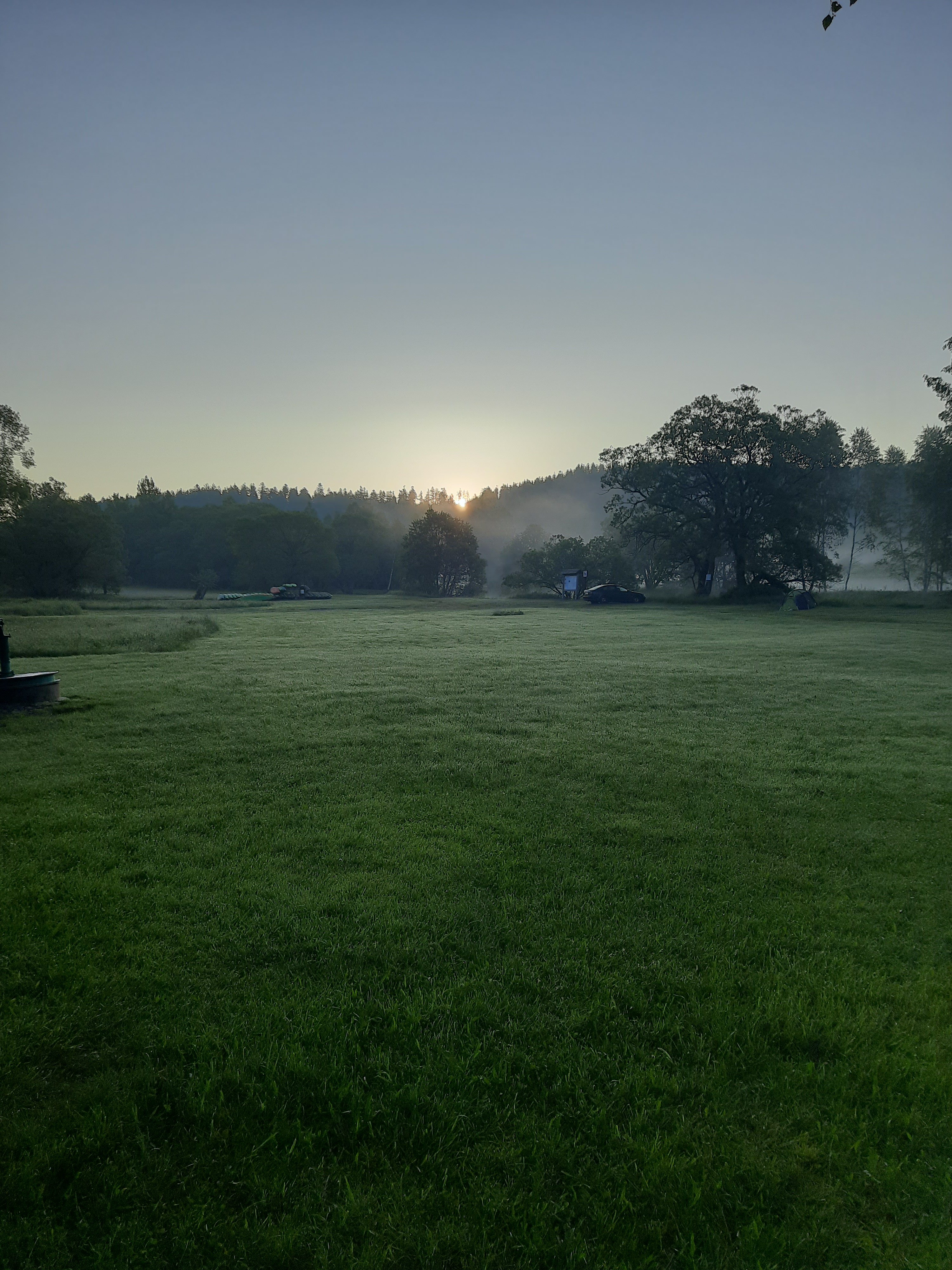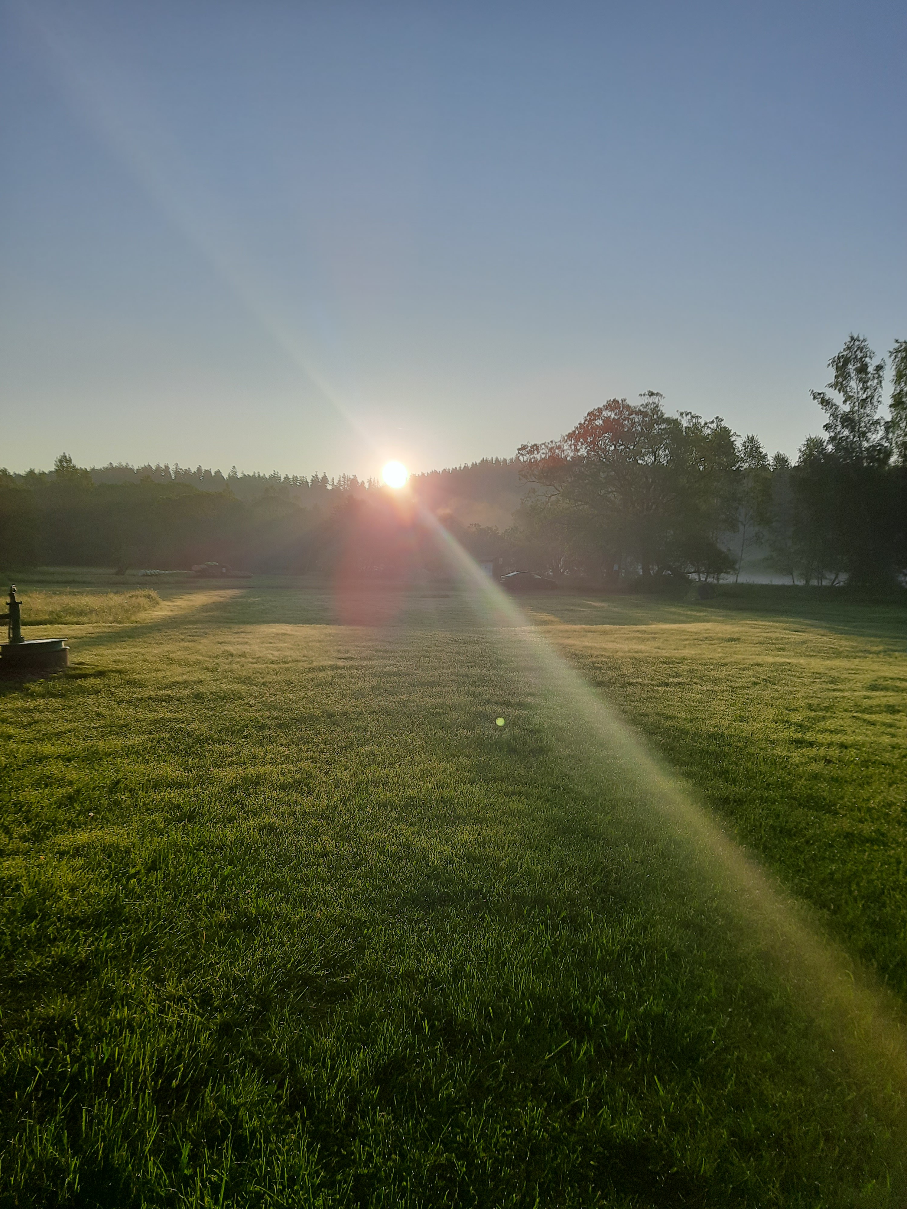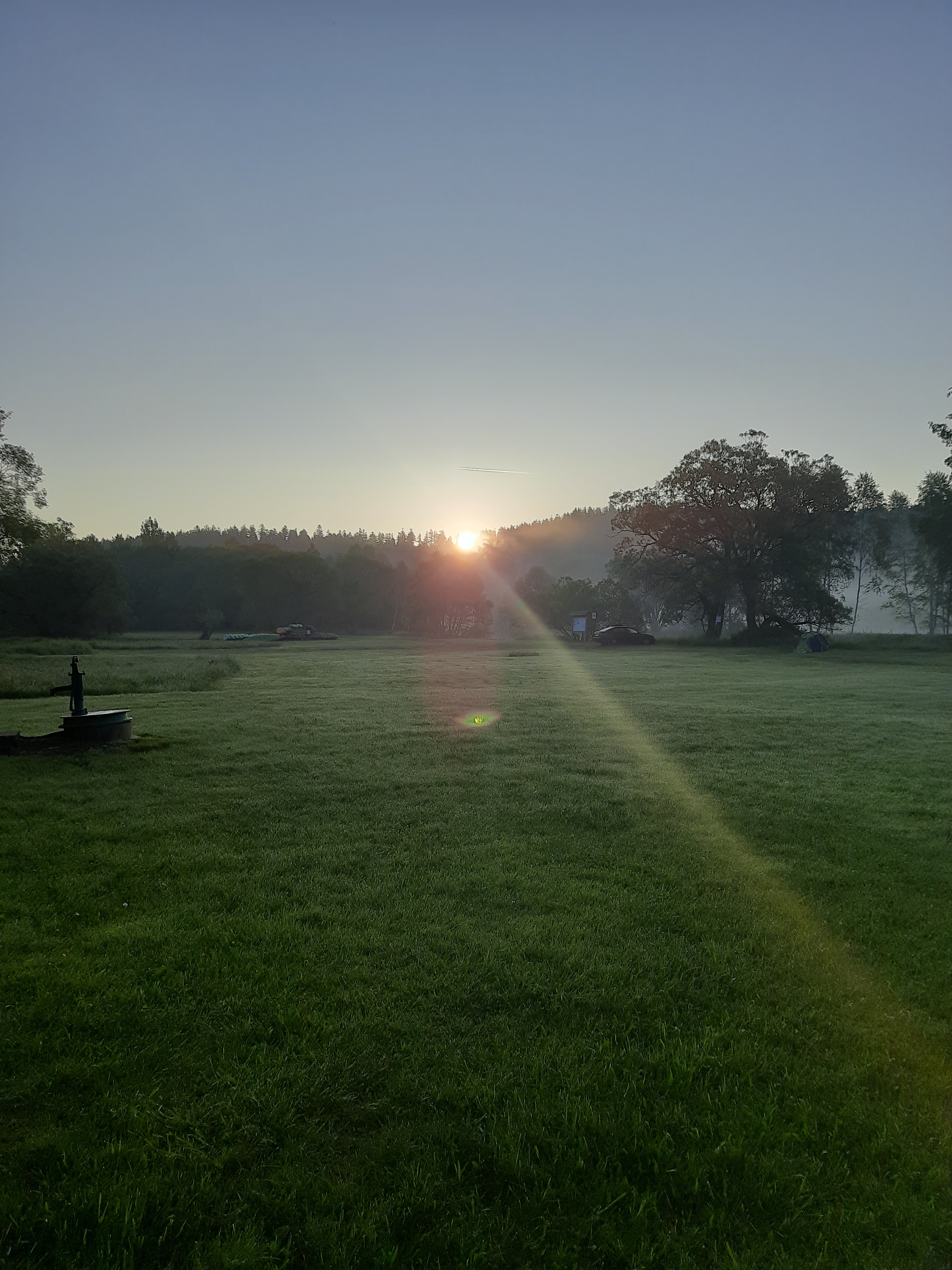 A máme tu páteční ráno. Vzbudil jsem se brzy, respektive budil jsem se pořád, i další noci. Samonafukovací karimatka nic moc, záda, boky. Ale ranní klubající se sluníčko super. Jen taky bylo 9 stupňů, tak mi nad ránem omrzal karbenátek.